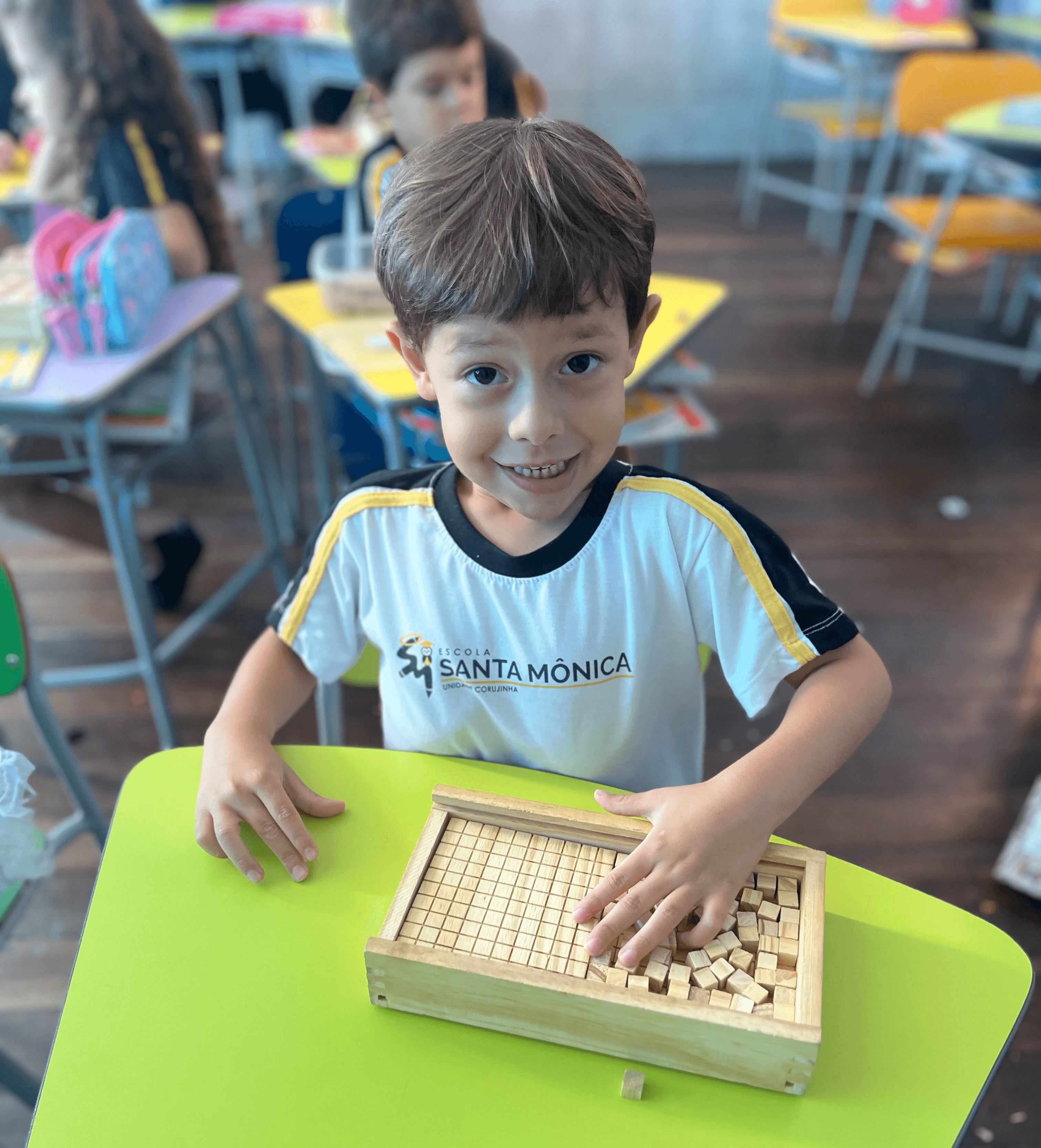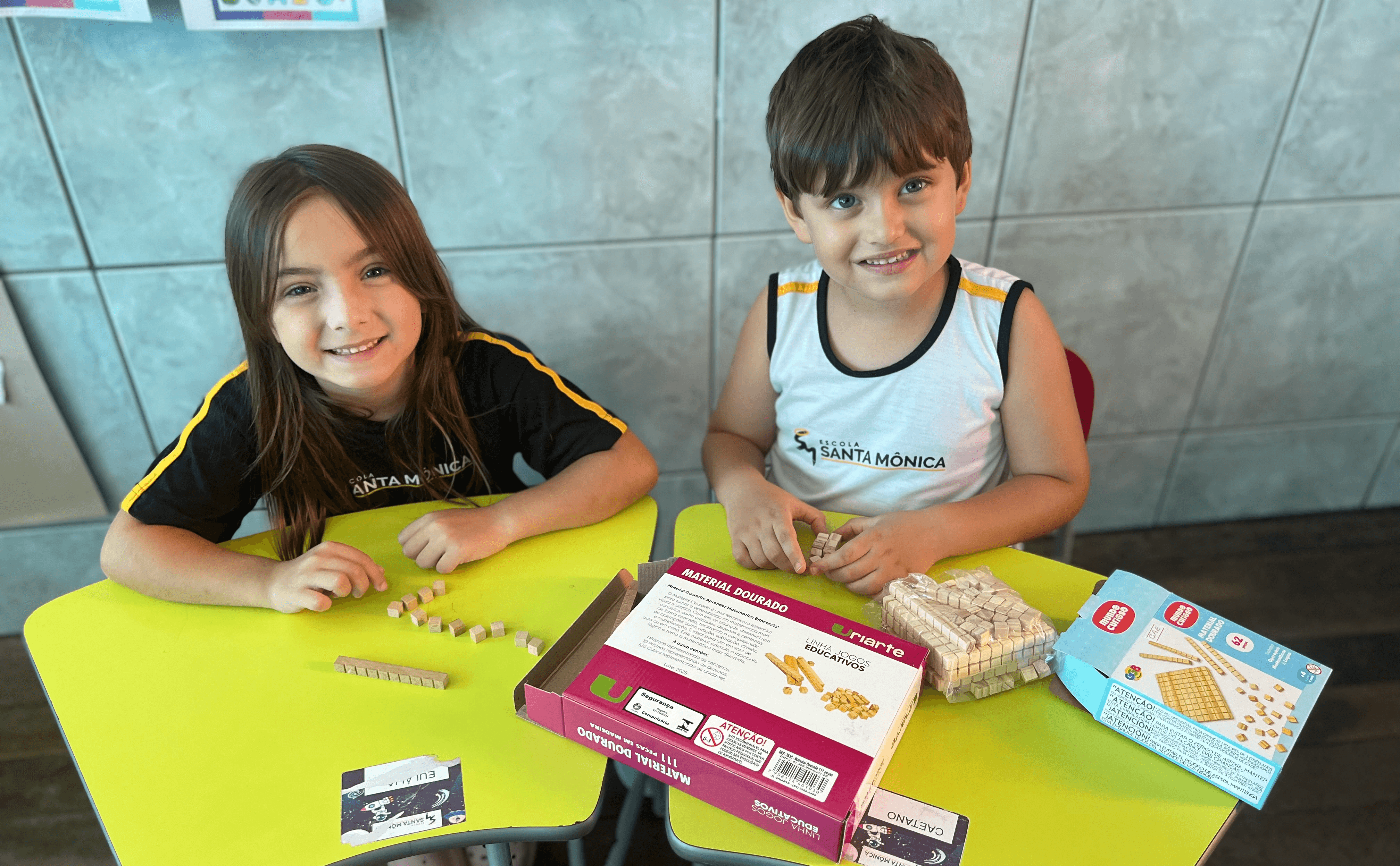 Alunos do Jardim III aprendem números de forma lúdica com material dourado