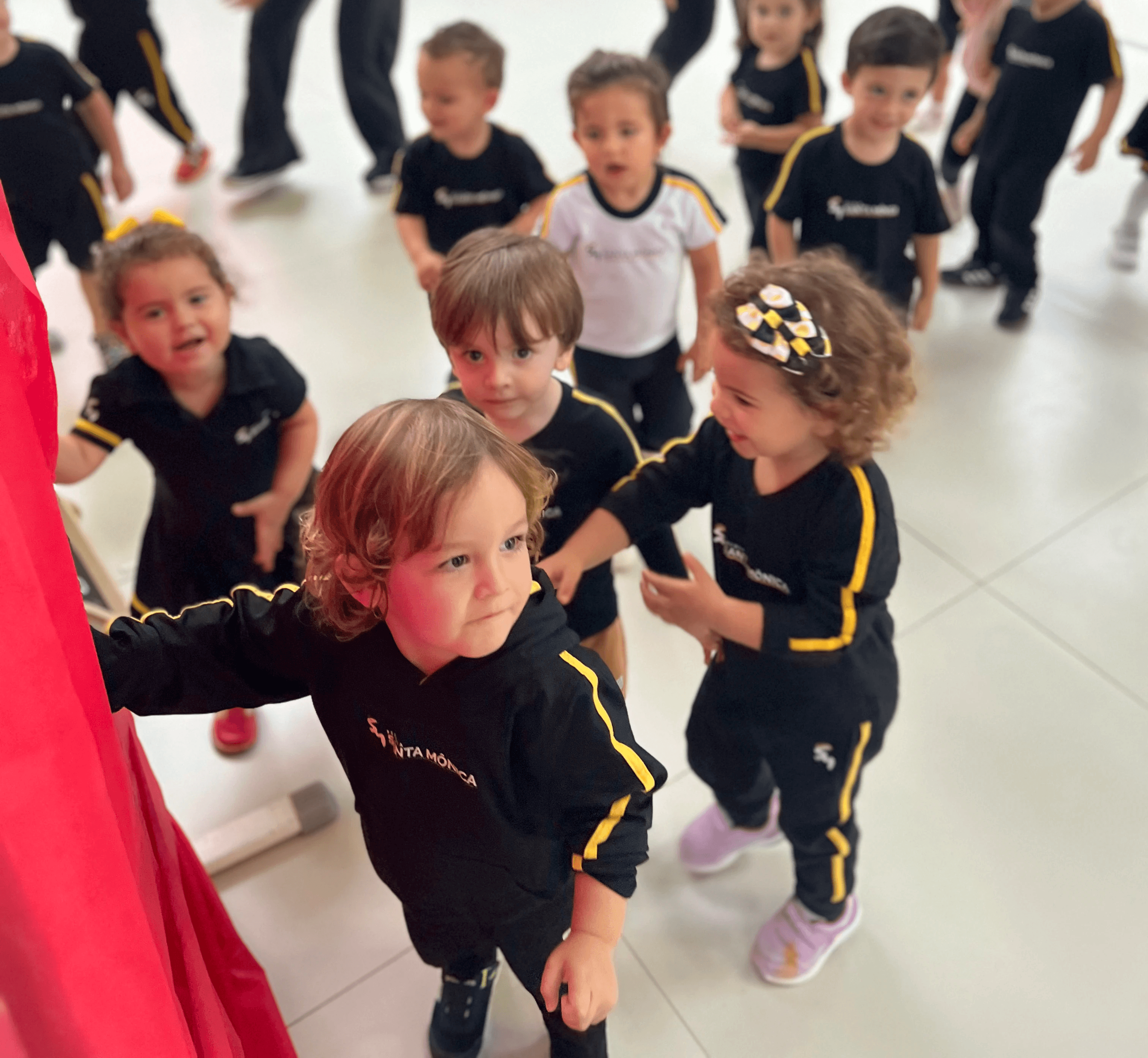 Vivências como essa fazem parte das práticas pedagógicas da Educação Infantil, que valorizam experiências adequadas à faixa etária, promovendo aprendizagens por meio da brincadeira, da participação e da interação com o grupo.