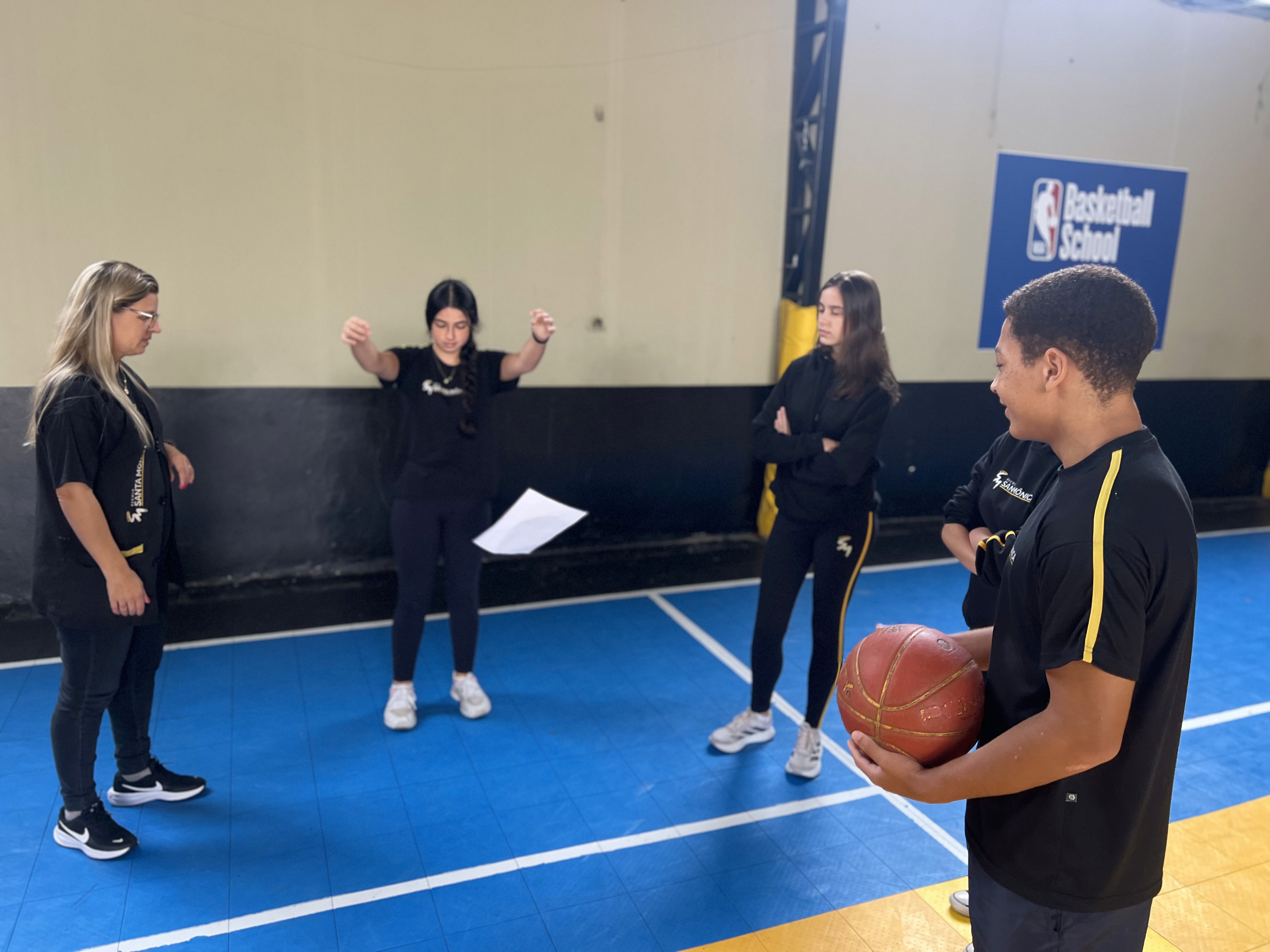 A proposta envolveu a comparação da queda de diferentes objetos: uma bola e uma folha de papel posicionada de duas formas. Durante a atividade, os alunos utilizaram cronômetro para registrar o tempo de queda, levantaram hipóteses e analisaram os dados obtidos.